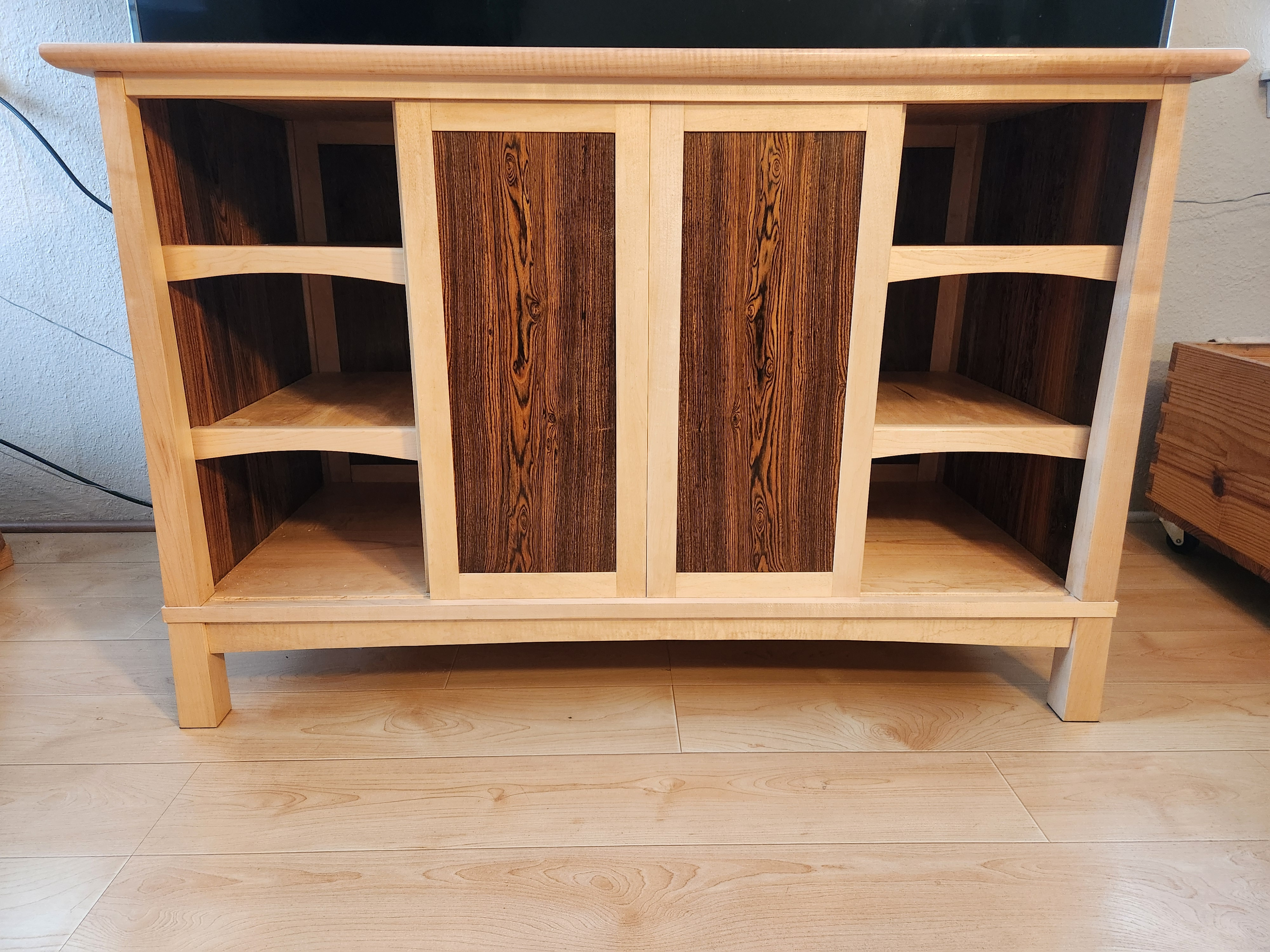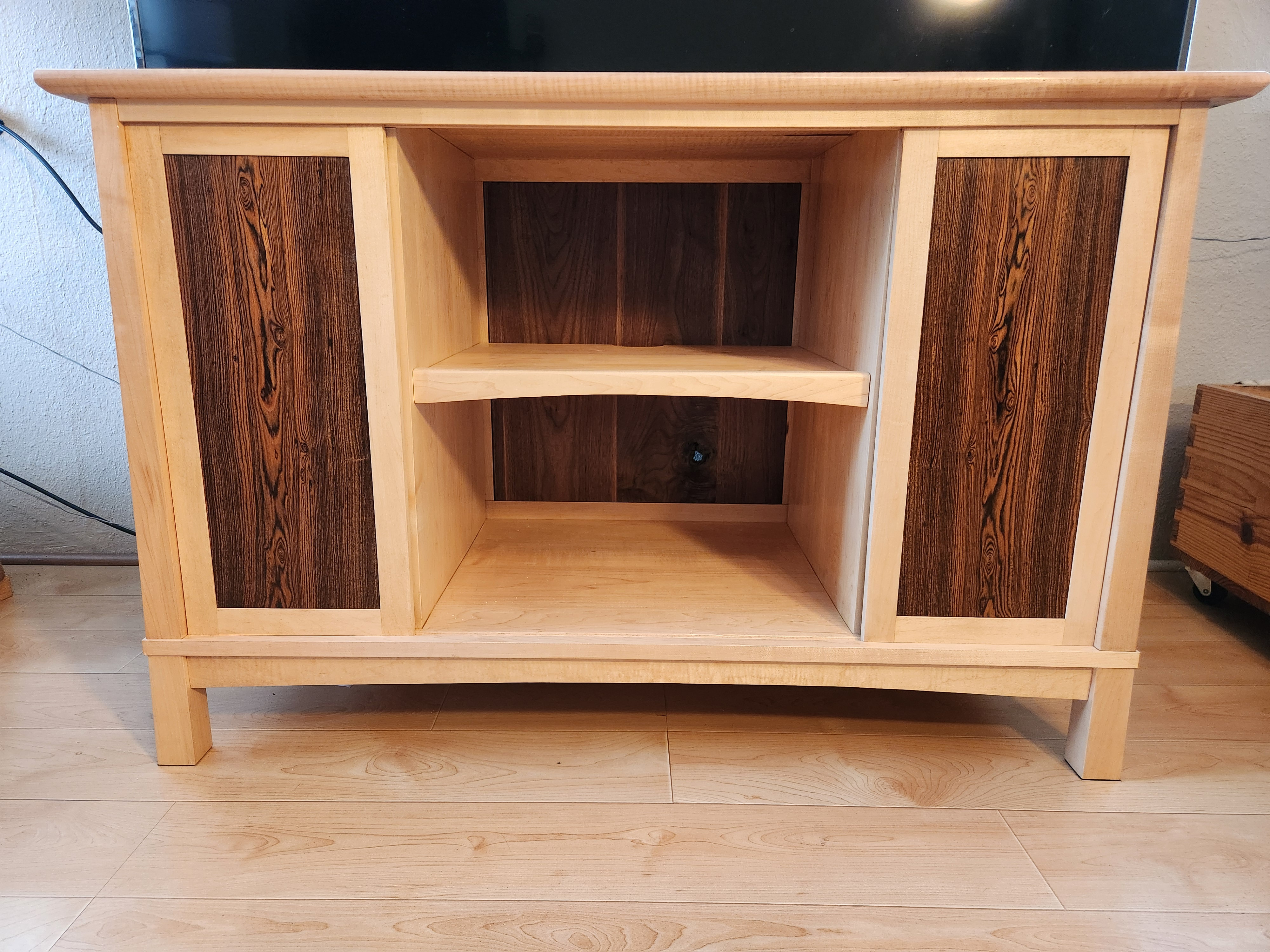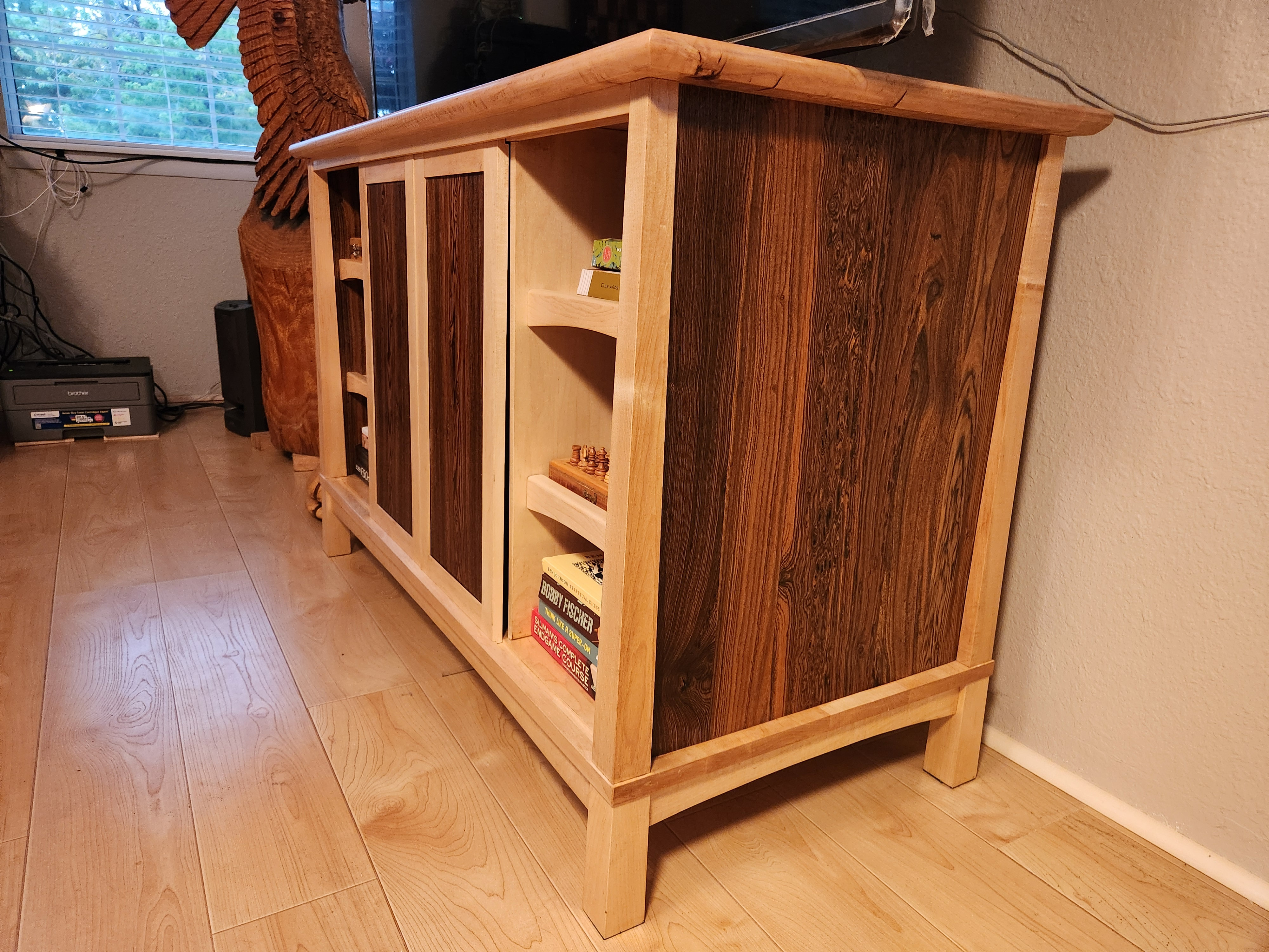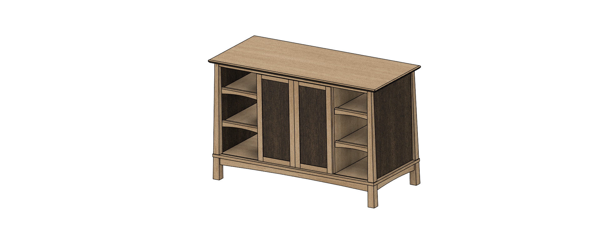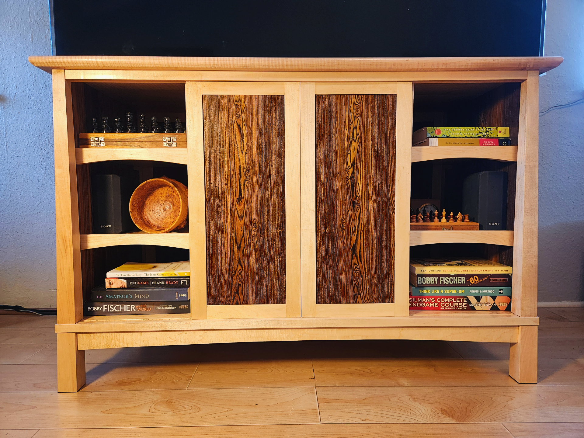 This is a minimalist design for one or two devices. The arched base gives clearance for robot vacuum to pass underneath. The height puts the TV at an optimal viewing angle for eye-level height of the couch. If not used as an entertainment center, it can be used as a sideboard (credenza) behind a couch or against the wall.